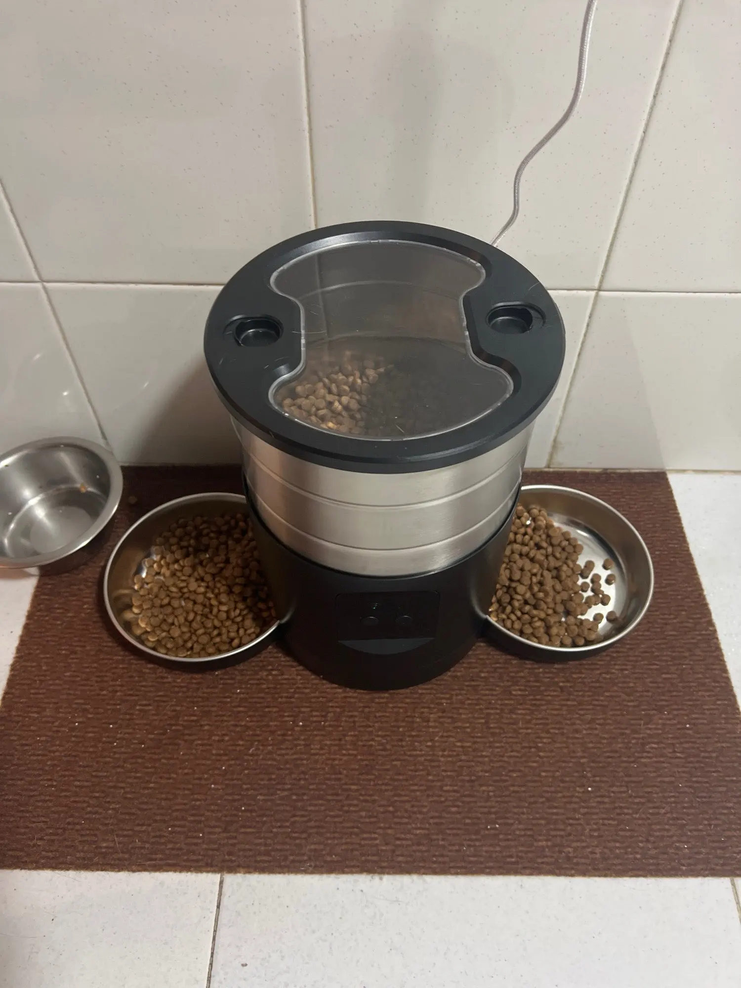 Dual-Bowl Feeding Station: Includes a 2-way splitter and two stainless steel bowls, making it ideal for feeding two pets at the same time.
