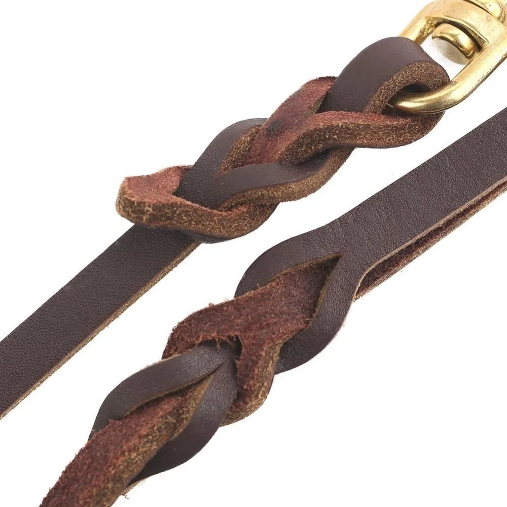 Experience strength, comfort, and craftsmanship with this braided genuine leather dog leash, designed for training and everyday walking. Made from high‑quality leather and fitted with a solid copper hook, this leash offers exceptional durability while remaining soft and comfortable to handle. The braided design adds both style and reinforced strength, making it ideal for small, medium, and large dogs.