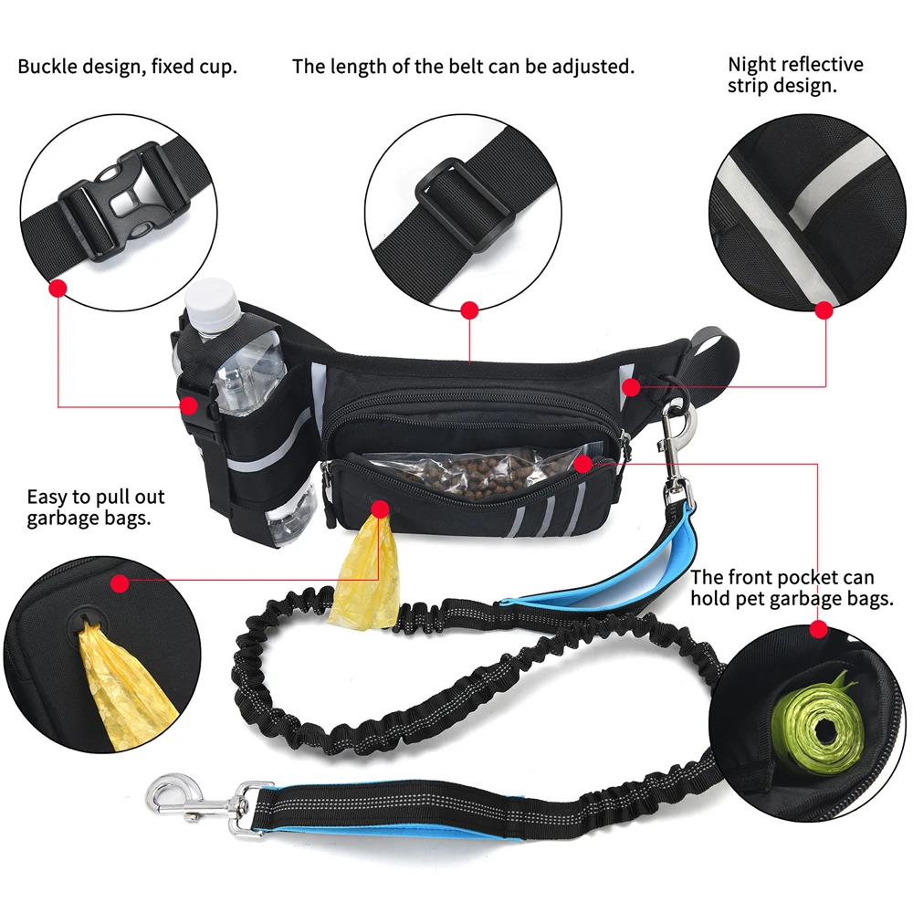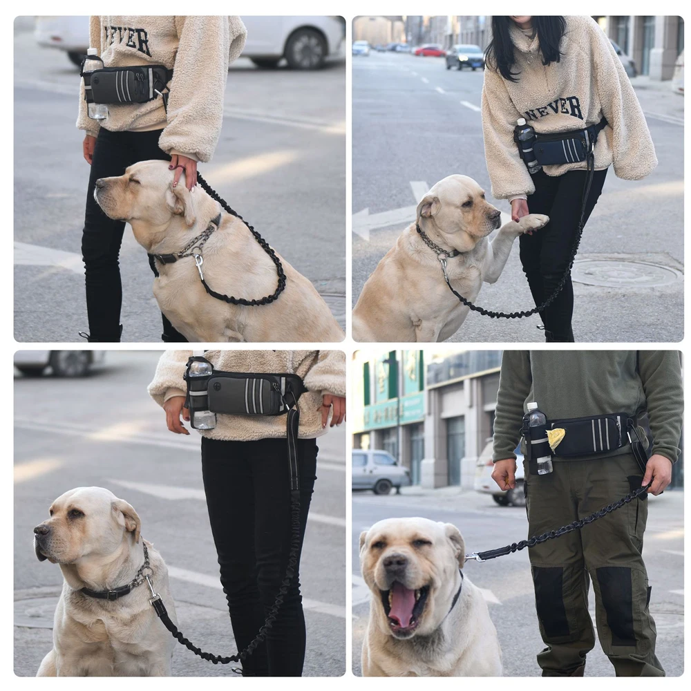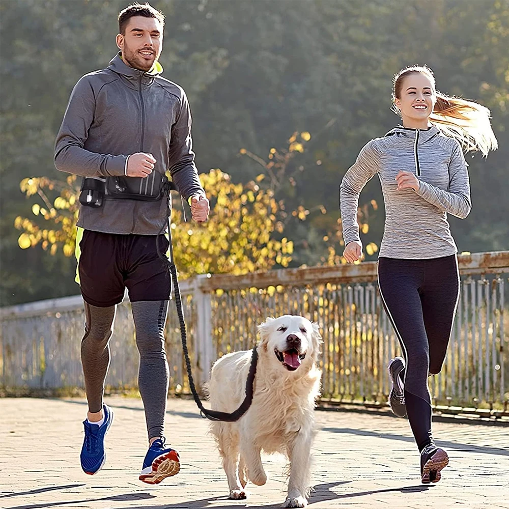 Stay active, comfortable, and hands‑free with this bungee waist dog leash system, designed for medium and large dogs who love outdoor adventures. The adjustable waist belt includes a spacious zippered fanny pack, giving you quick access to essentials like your phone, keys, water bottle, poop bags, and treats — perfect for walking, hiking, jogging, or training.