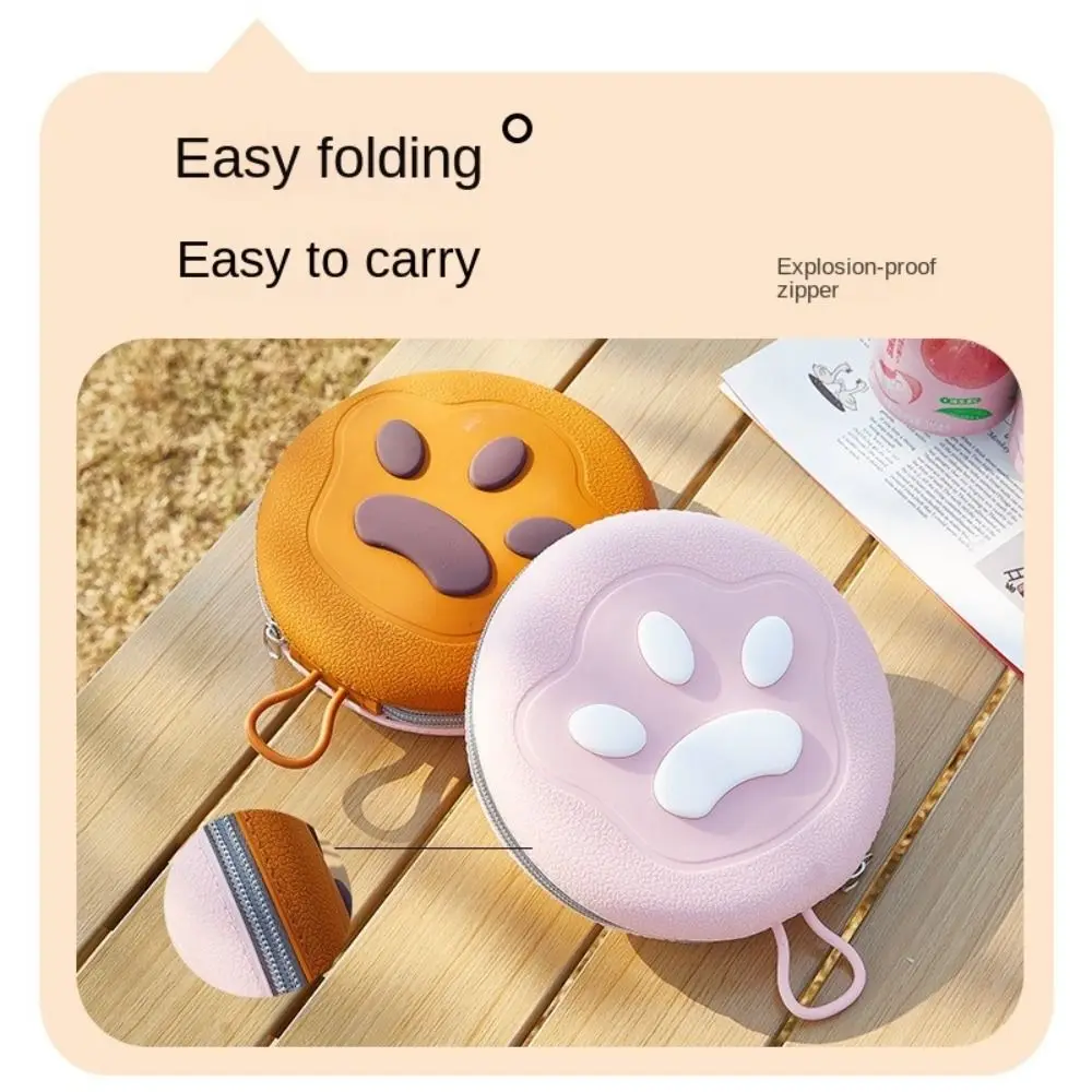 The specialized foldable architecture allows the bowl to collapse into a compact, lightweight disc that can be easily carried in a bag or hung from a leash. Beyond its feeding capabilities, the durable and soft silicone material allows the folded bowl to be used as a frisbee-style pet toy for interactive play during breaks. Featuring a charming cat-paw design and available in multiple vibrant colors, this portable container ensures your pet stays hydrated and nourished with style and ease.