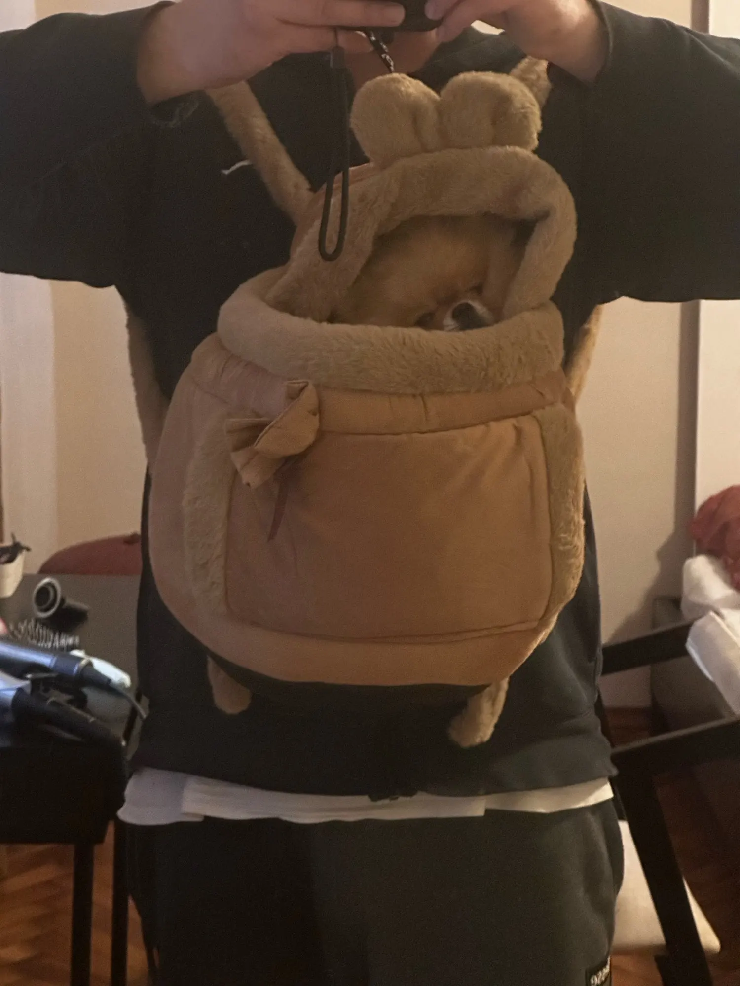 Keep your furry friend snug and warm during chilly outings with our Winter Warm Pet Carrier Backpack. This ultra-soft, plush-lined carrier is designed to function as a mobile "nest," providing a heat-retaining environment for small dogs like Chihuahuas and Yorkshires, as well as cats. Featuring adorable bunny-ear detailing and a secure head-out design, this backpack ensures your pet stays cozy while enjoying the view during winter walks or travel. The ergonomic shoulder straps allow for comfortable carrying, making it the perfect home-away-from-home for your pet mascotas.
