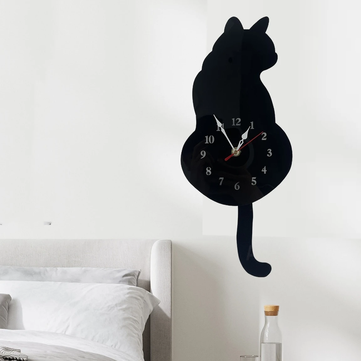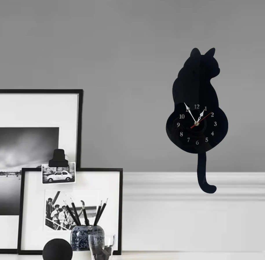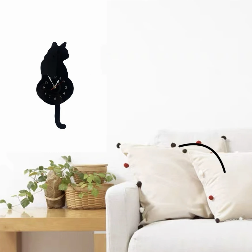 Bring a playful and stylish touch to your home with the Creative Wagging Tail Cat Wall Clock. This adorable cat-shaped clock features a wagging tail and silent quartz movement, making it a perfect blend of functionality and charm. Ideal for cat lovers and anyone looking to add a unique decorative piece to their space.