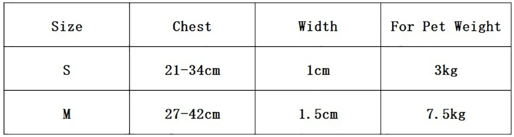 Size M: Chest 27-42cm (Recommended for pets up to 7.5kg)