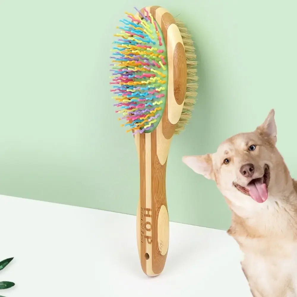 Give your pets a healthier, cleaner, and more comfortable grooming experience with this Double‑Sided Pet Brush, designed for cats and dogs of all sizes. Featuring a natural bamboo handle and dual‑purpose grooming heads, this brush removes loose hair, detangles knots, and provides a soothing massage that promotes blood circulation.