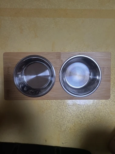 The cat food and water bowl set are made of stainless steel bowls which are rust-resistant and removable. Dishwashers safe and easy to clean. no odor wood is waterproof and long lasting