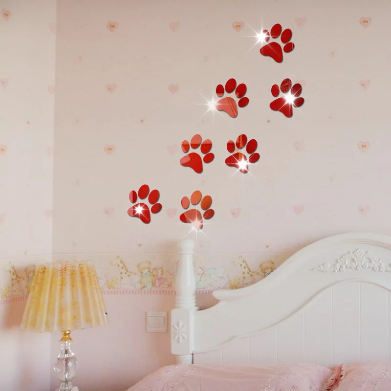 6PCS Mirror acrylic dog paws three-dimensional wall stickers 3d crystal pet wall Boy and girl kids room christmas decoration