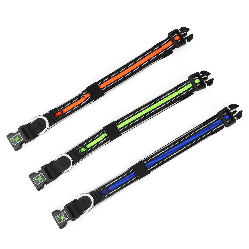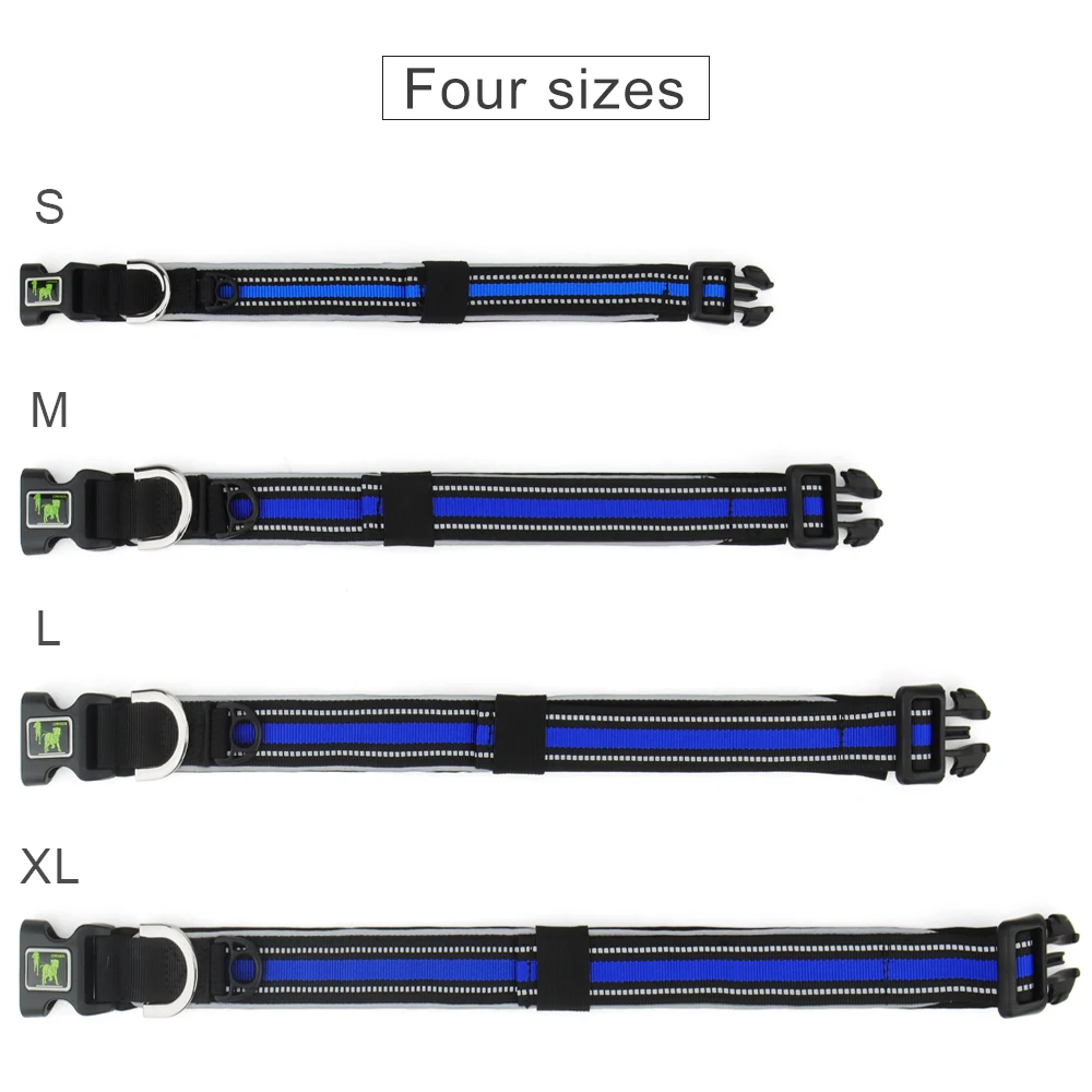 Safety is prioritized with an integrated four-line reflective strip design, providing enhanced 360-degree visibility for motorists and pedestrians during nighttime strolls. This durable collar features a secure quick-release buckle and a robust metal D-ring for a reliable leash connection. Available in multiple sizes and vibrant colors, it offers a professional-grade fit for small, medium, and large pets alike.