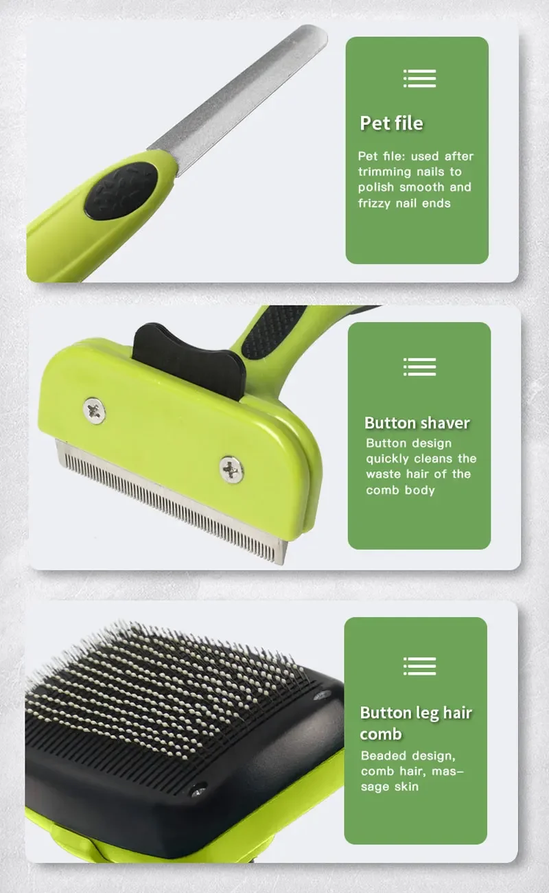 Keep your pet looking and feeling their best with this professional 6-piece grooming kit, designed for both dogs and cats. The set includes four ergonomic combs for detangling, deshedding, and massaging, plus a precision nail clipper and nail file for safe trimming. Made from durable TPR, metal, and plastic, each tool features a comfortable grip and compact design for easy handling and storage. Whether you're managing undercoats or trimming nails, this kit covers all your grooming needs at home or on the go.