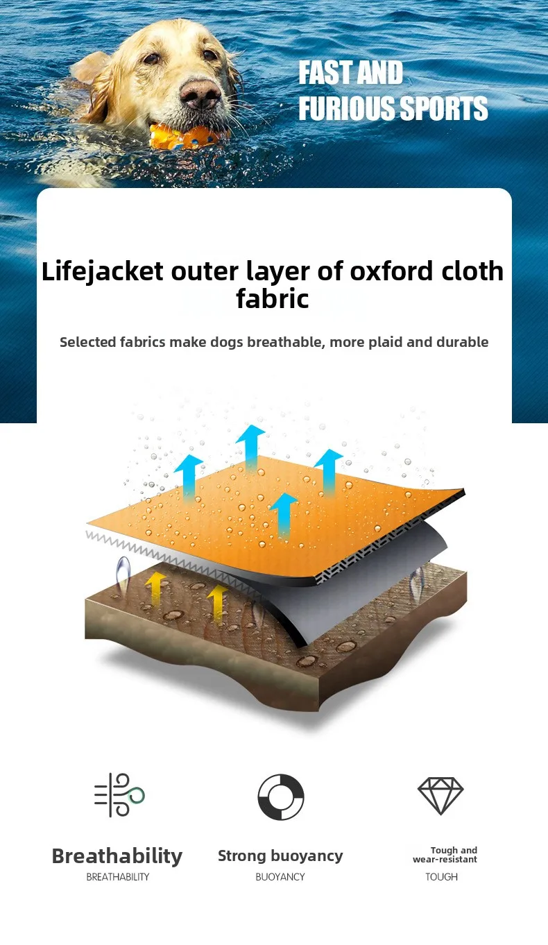 Integrated Rescue Handle: Features a sturdy, reinforced top handle that allows for immediate control or emergency lifting if your pet needs assistance getting back into a boat or onto a surfboard.
