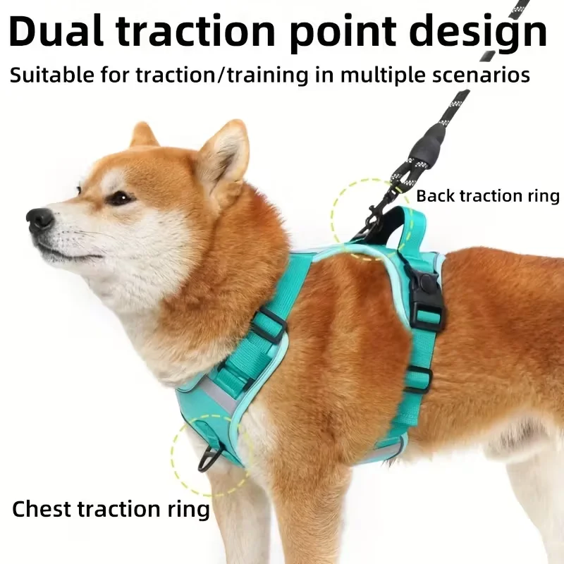 Ensure your pet's safety and comfort with our Reflective No-Pull Dog Harness Vest. This heavy-duty chest strap is engineered to distribute pressure evenly, preventing choking and providing a secure, escape-proof fit for dogs of all sizes.