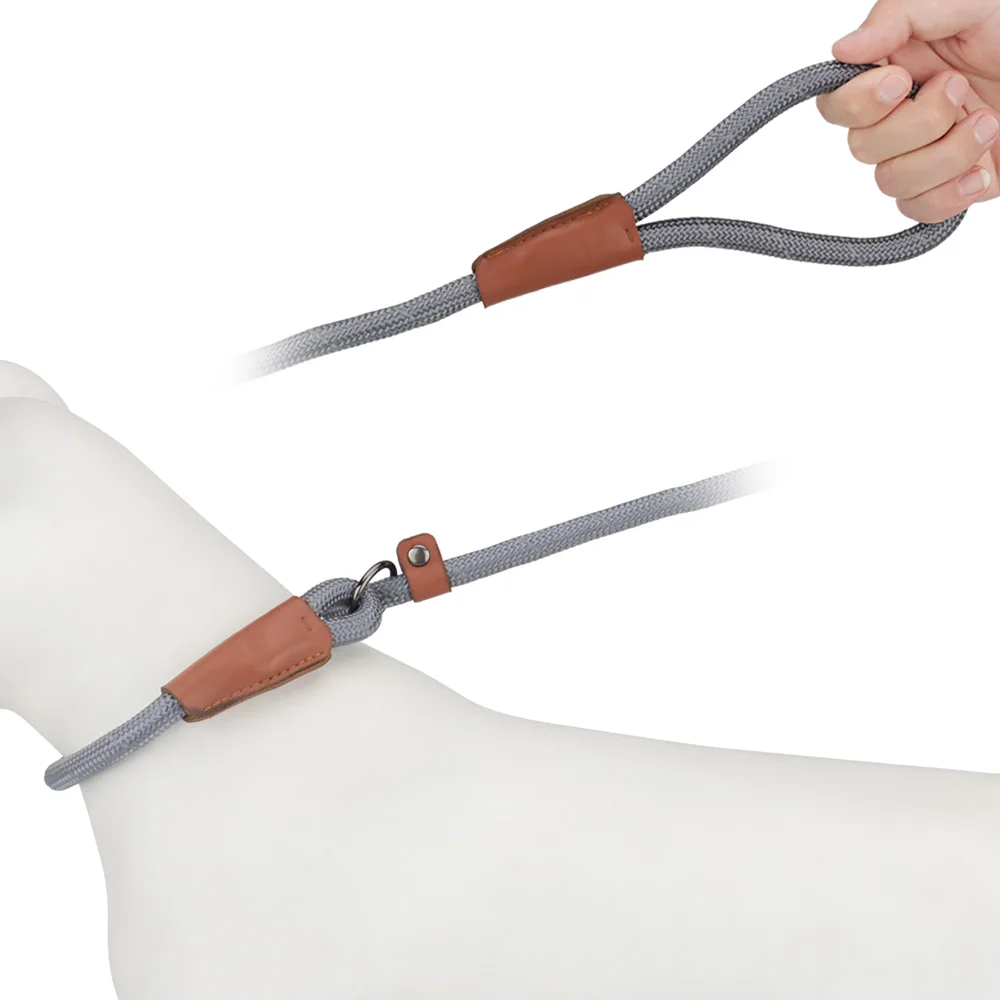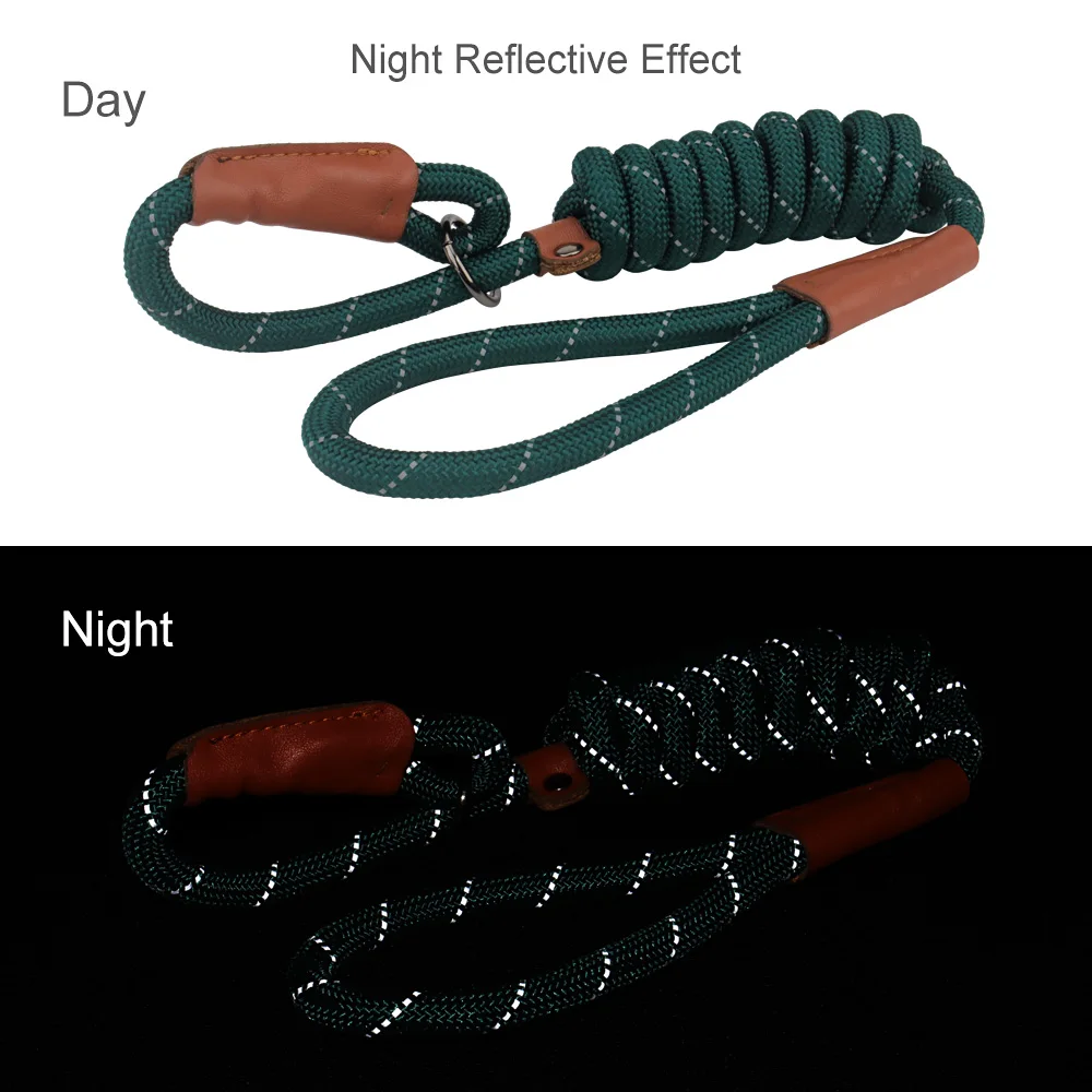 Made from high‑quality polyester, the leash features a round rope structure, reinforced leather joints, and reflective stitching for added safety. The P‑shape design provides smooth control and a comfortable grip, making it ideal for dogs of all sizes.