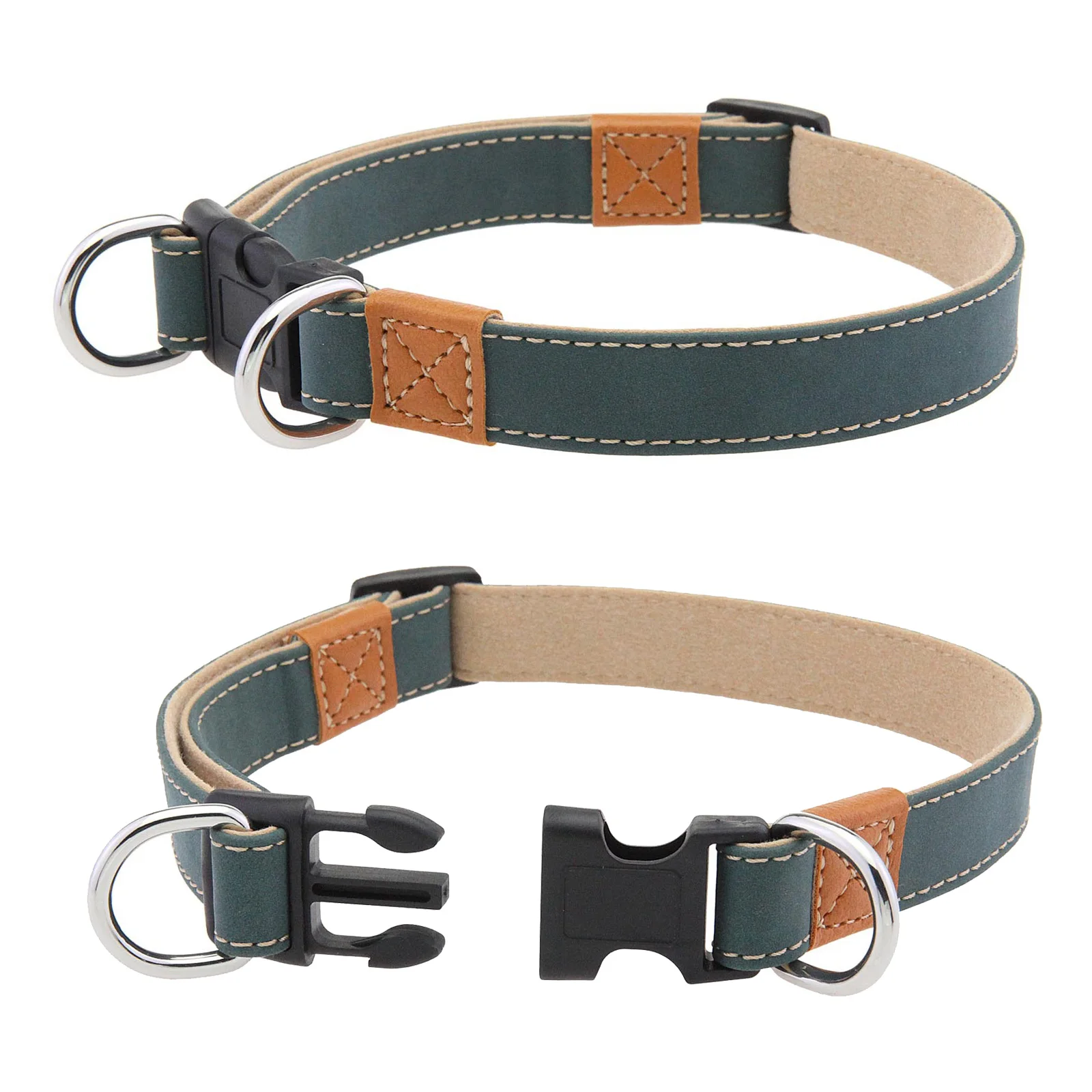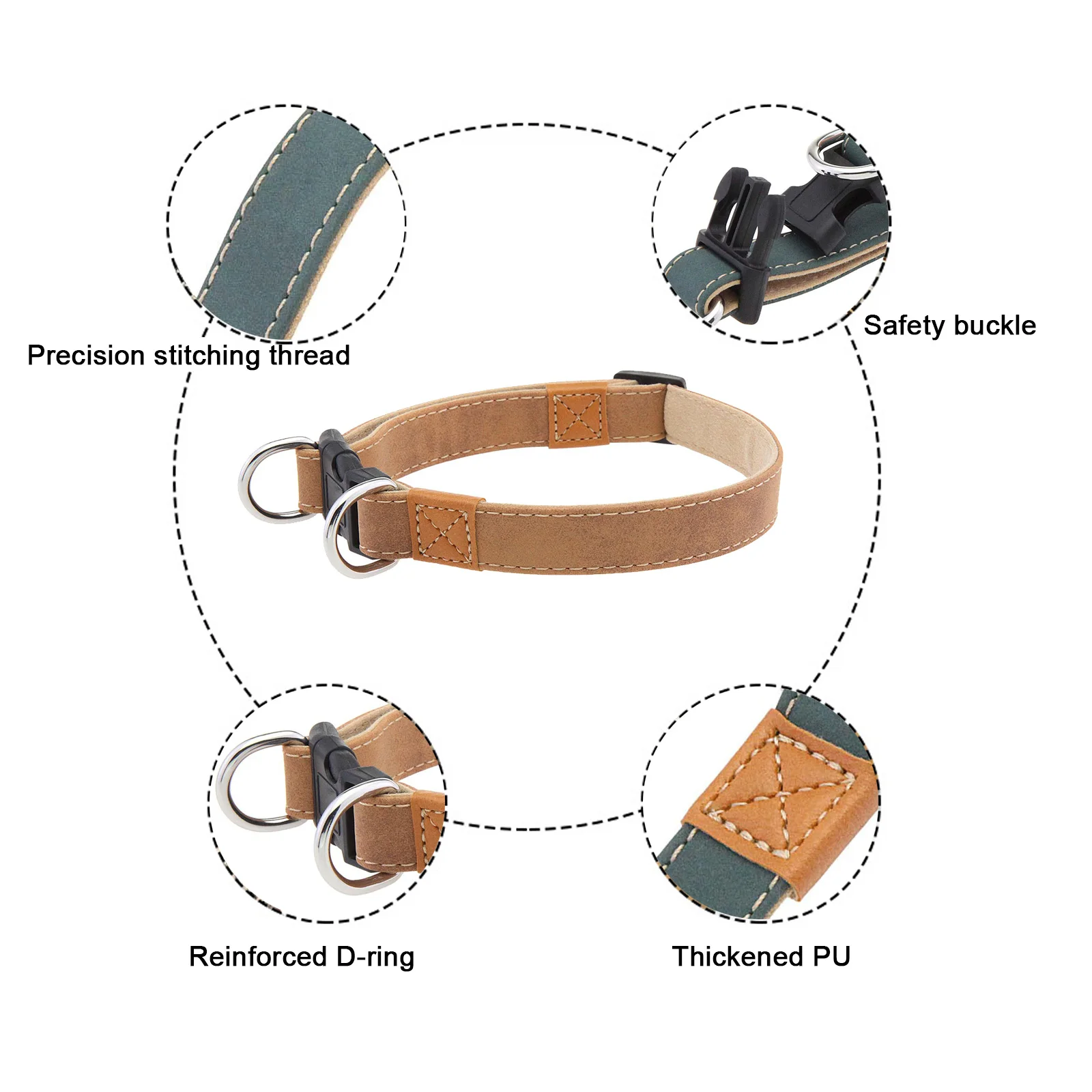 Made from high‑quality PU leather with precision stitching, this collar offers long‑lasting durability while maintaining a soft, comfortable feel around your dog’s neck. The double metal D‑ring design provides extra security for leash attachment, making it ideal for daily walks, training, and outdoor adventures.