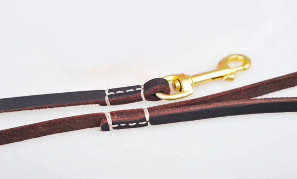Give your puppy or small dog a comfortable and secure walking experience with this soft genuine leather dog leash. Designed with premium craftsmanship, this leash features durable stitching, flexible leather, and solid brass hardware for long‑lasting performance. The lightweight feel makes it ideal for puppies and smaller dogs, while the strong construction ensures reliable control during training and daily walks.