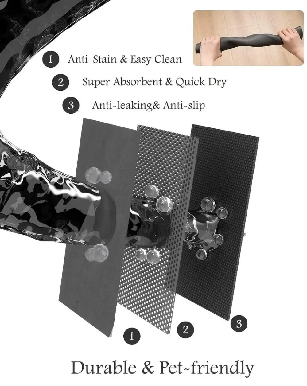Function: Moisture Absorption, Spill Containment, and Floor Protection