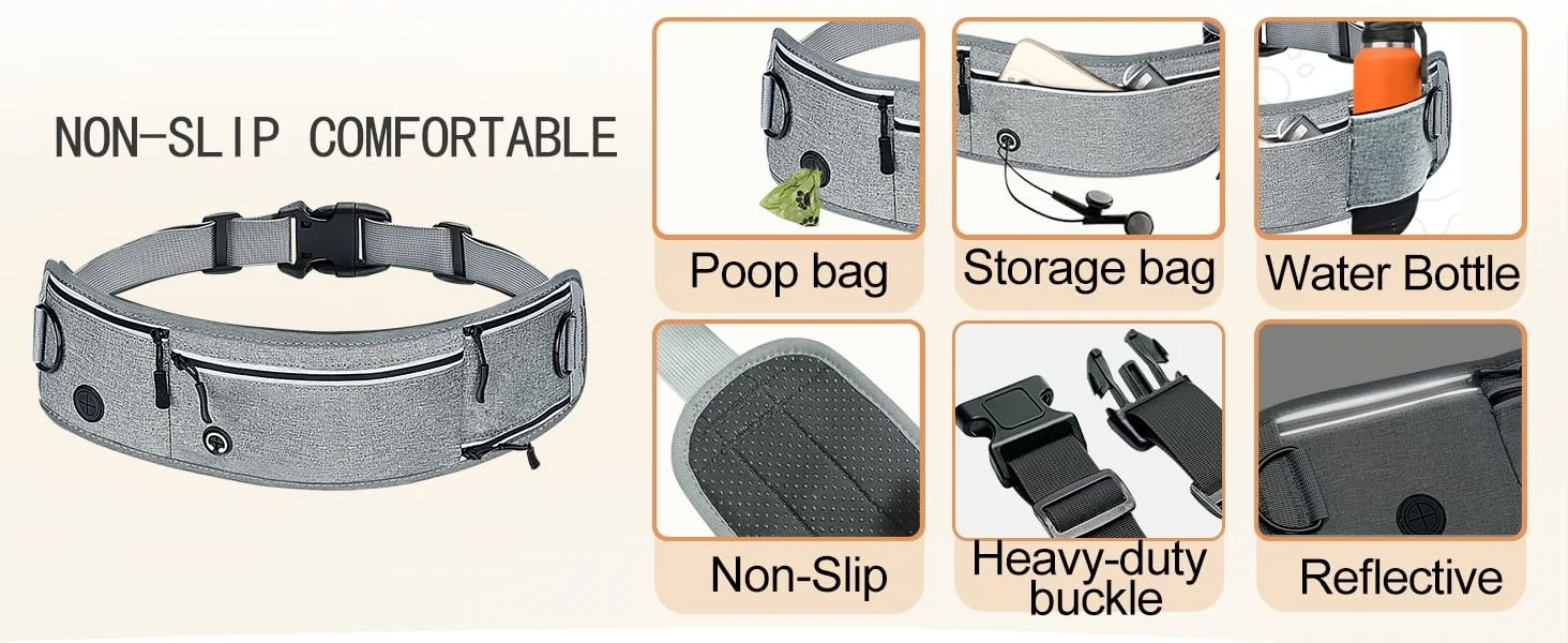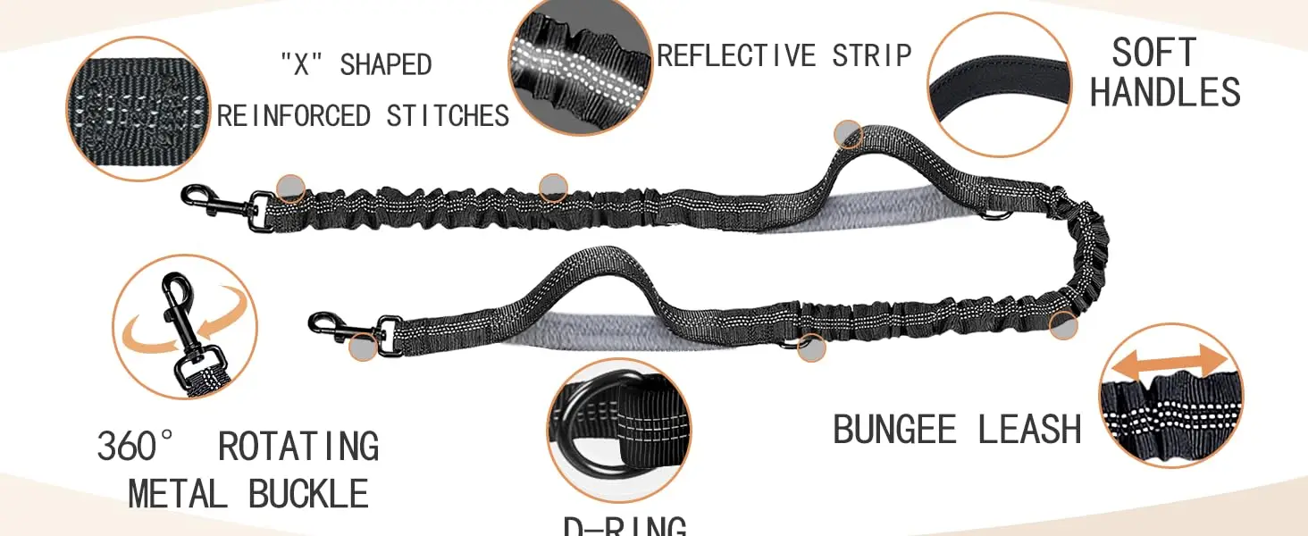 Stay active and hands‑free with this waist‑mounted dog leash system, designed for running, jogging, hiking, and everyday walking. The adjustable waist belt keeps your hands free while giving you full control through dual padded handles, allowing you to manage your dog comfortably in any situation.