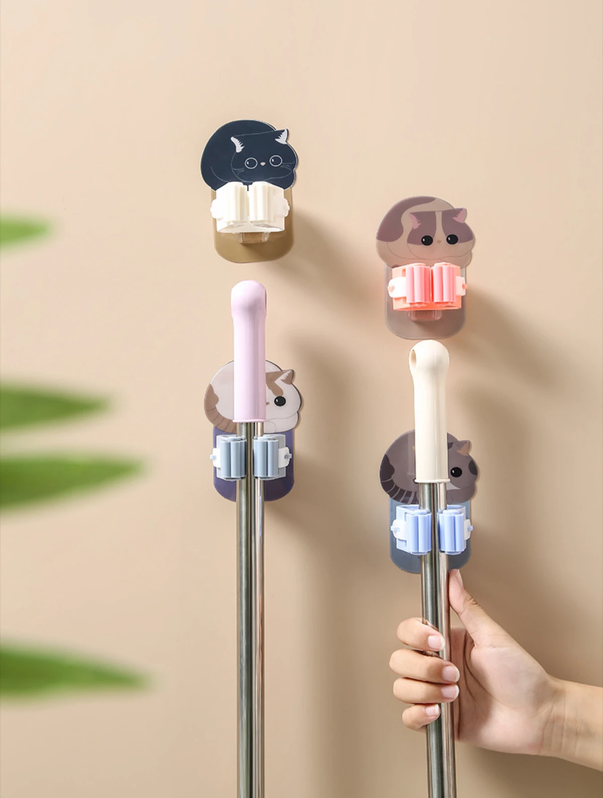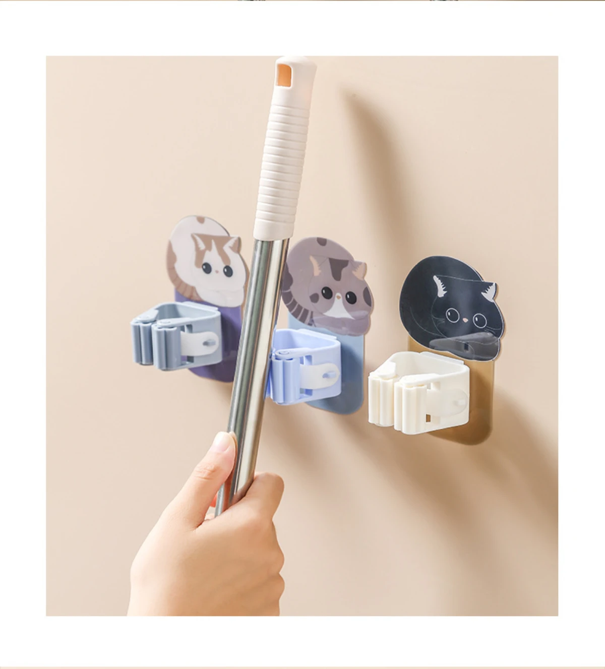 Stylish, space-saving, and easy to install—this cat-themed mop holder is a must-have for cute and functional home organization!